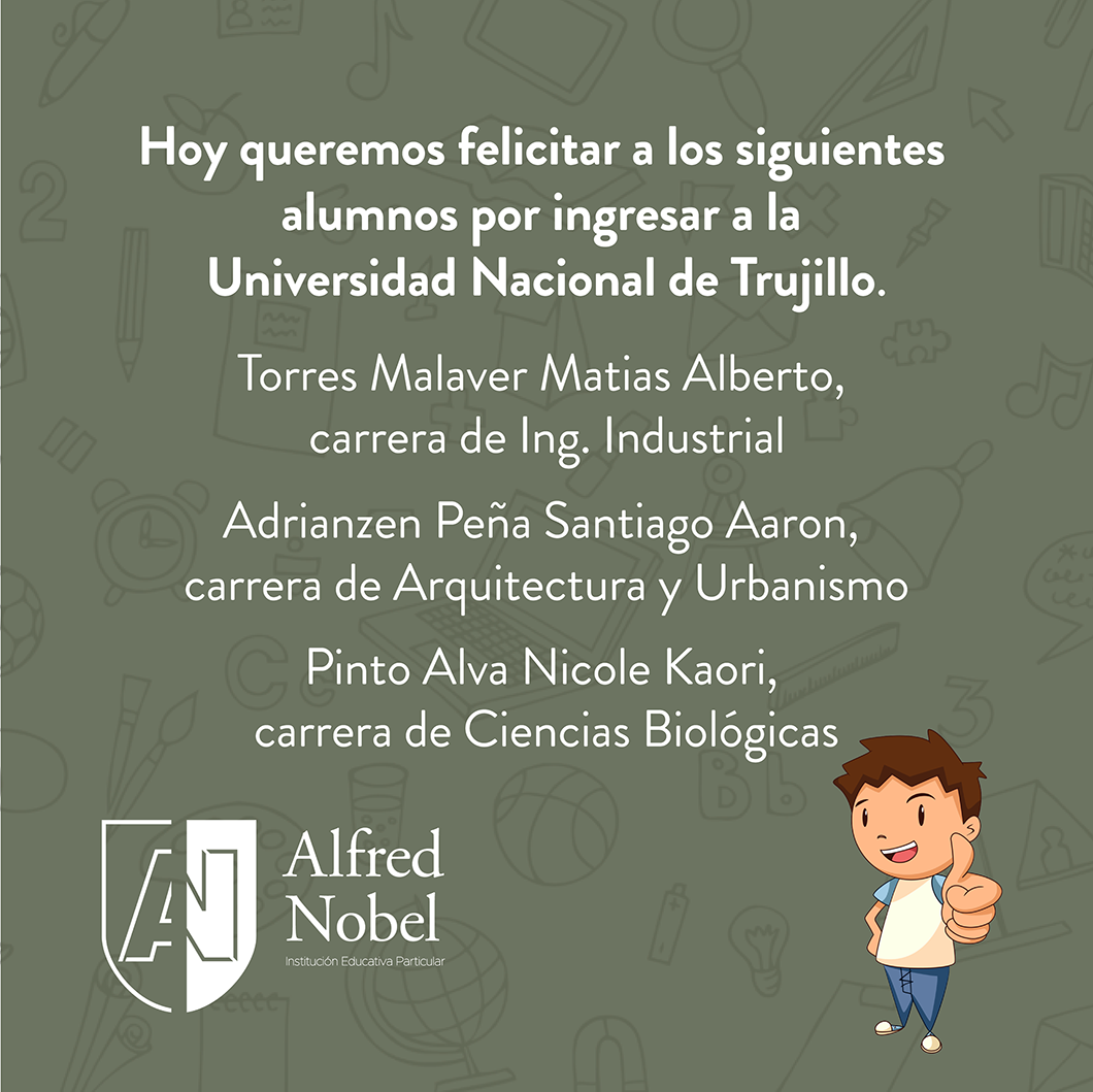 Nos complace comunicar a nuestra familia nobelista y a aprovechar la oportunidad para felicitar a los alumnos ingresantes a la Universidad Nacional de Trujillo.